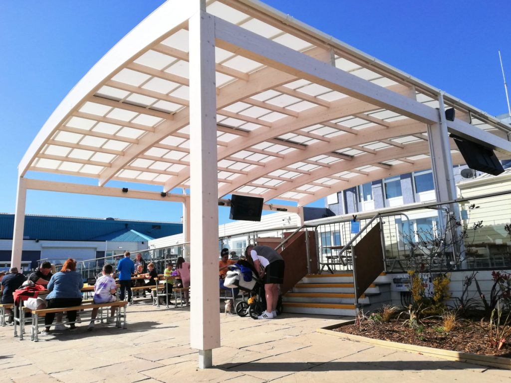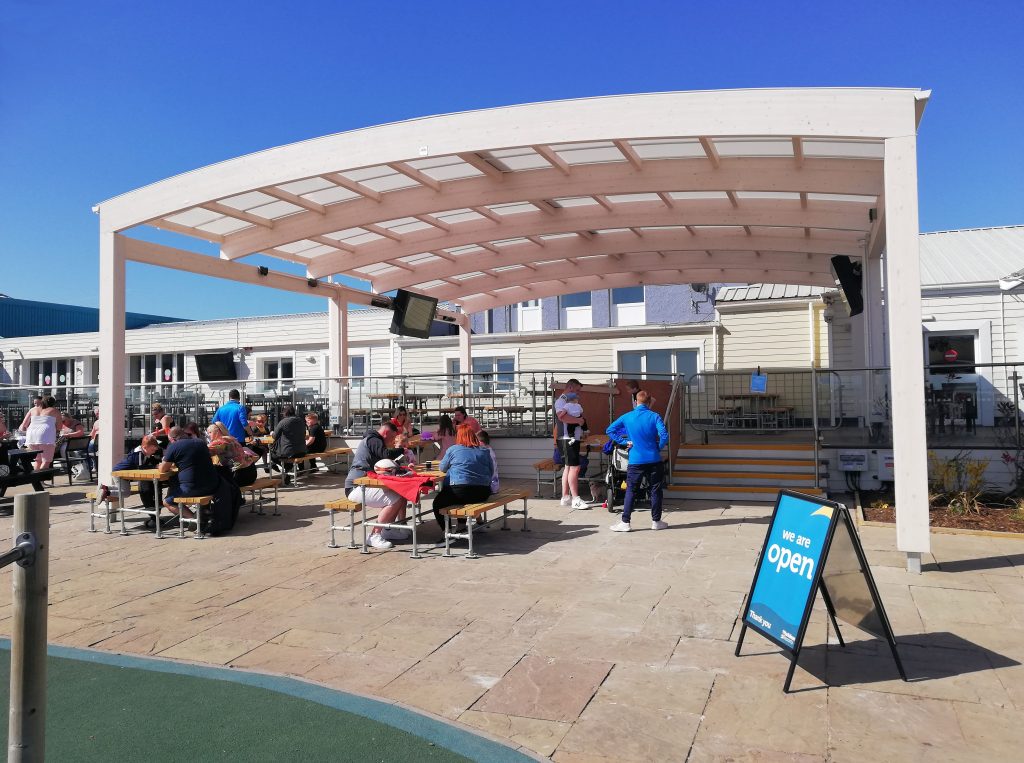 In January 2021, we therefore supplied and installed a Tarnhow Dome Free Standing Timber canopy that covers an impressive 109.6 square metres. Unlike the other timber canopies we installed for Parkdean Resorts, they opted to have this one finished with a white stain which we gives it a stunning fresh, seaside vibe.