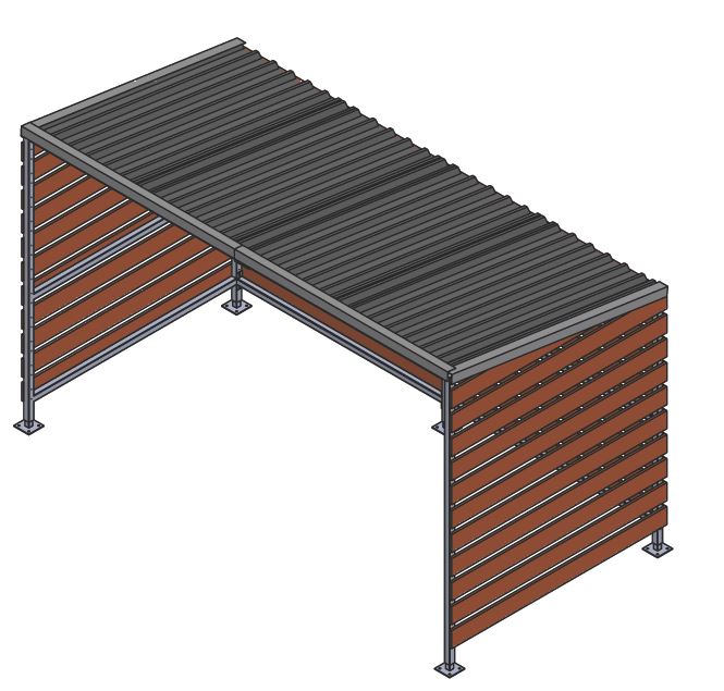 We sent an estimate for a 4.1m x 2.05m shelter with a hot-dip galvanised steel frame without the timber slats on the back and sides and another estimate with the timber slats as requested.