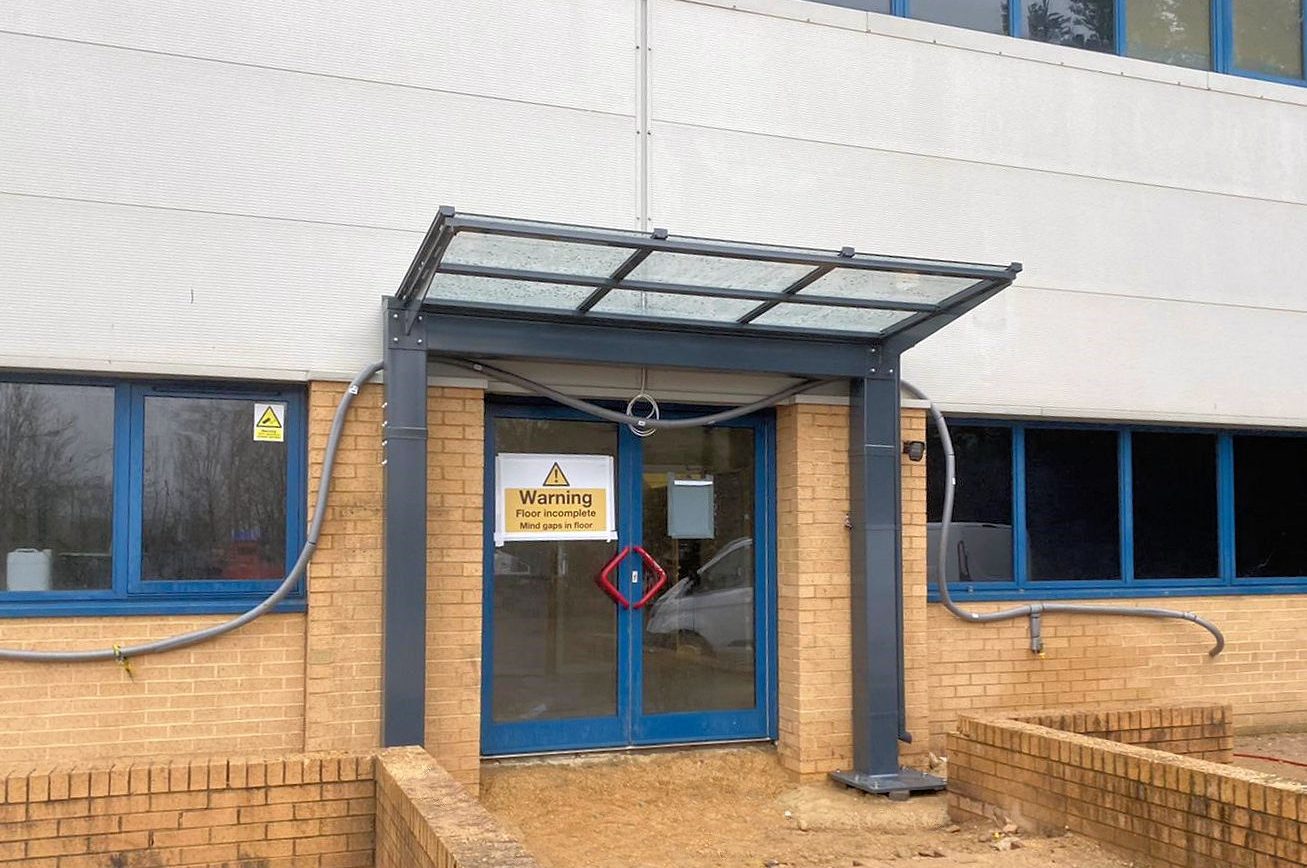 Able Canopies Ltd supplied and installed a 3m x 1.5m Kensington Mono Pitch Wall Mounted Canopy at Victoria Road Retail Park in Ruislip, Middlesex. The Kensington created a clear entrance to the building and reduces the risk of the inside getting wet and keeps it shaded and cool. We also installed two Easydale Cycle Shelters.