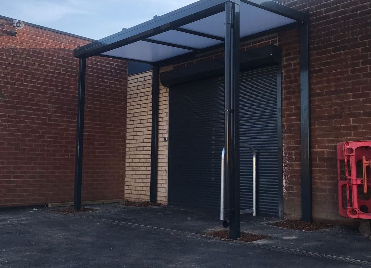 We installed a 3.2m x 1.5m Coniston Wall Mounted Canopy on RSGP which helped create the shelter required for the larger entrance. And a 2.3m x 2.9m Whiteside Entrance Canopy.