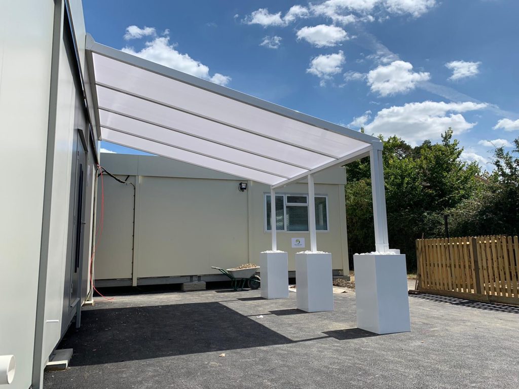 Our fitting team supplied and installed a 4m x 4m Coniston Wall Mounted Canopy with planters at Westvale Park Primary Academy in July 2020 on behalf of Portakabin. The canopy we fitted to the portakabin will provide shade and shelter all year round.