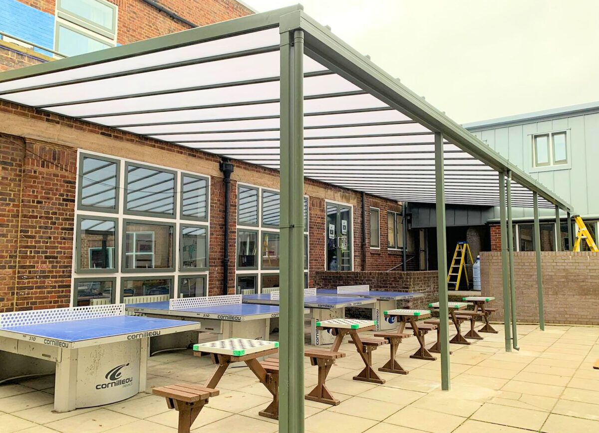 In October 2020, we installed five Coniston Wall Mounted Canopies in different areas of the school grounds in various sizes meeting their requirements. The school choose the canopies to be coloured in the RAL colour Green Grey which matched the school’s surroundings perfectly.