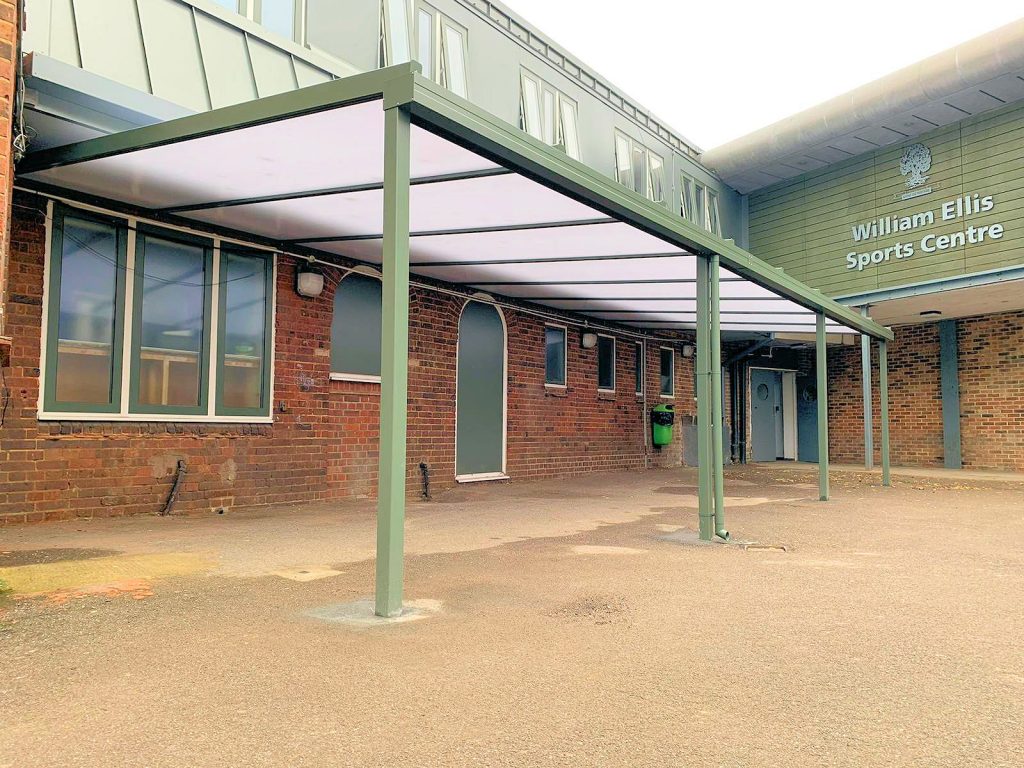 William Ellis School in Highgate, London contacted us as they were looking to have several canopies installed around their school to create covered walkways and covered outdoor areas.