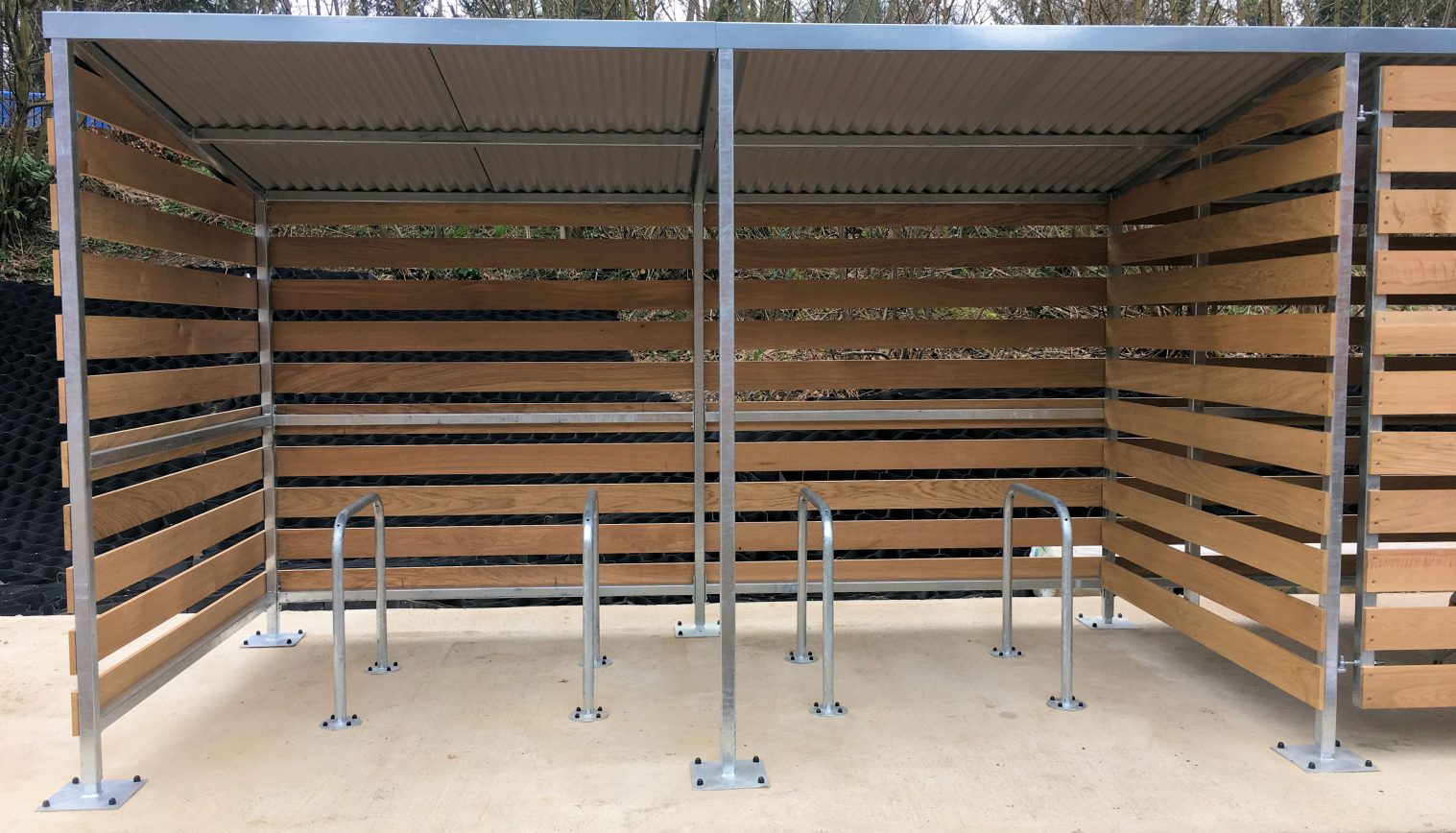 In March 2017, we supplied and installed a 12m x 2m Grasmere Timber Clad Shelter at Wycombe Abbey in Buckinghamshire. We installed 4 cycle hoops to one half of the shelter allowing 8 bicycles to be securely locked up during the school day. We added lockable timber doors as an optional extra to the other side of the shelter which created an enclosed bin storage area.