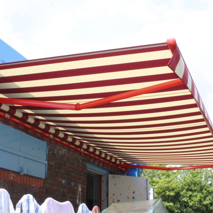 Able Canopies open awnings are the perfect retractable shade structures for schools, shops, restaurants, bars and hospitals. They offer high UV protection from the sun and provide a cool shaded area underneath for users to enjoy sitting outside whilst dining, playing or simply relaxing.