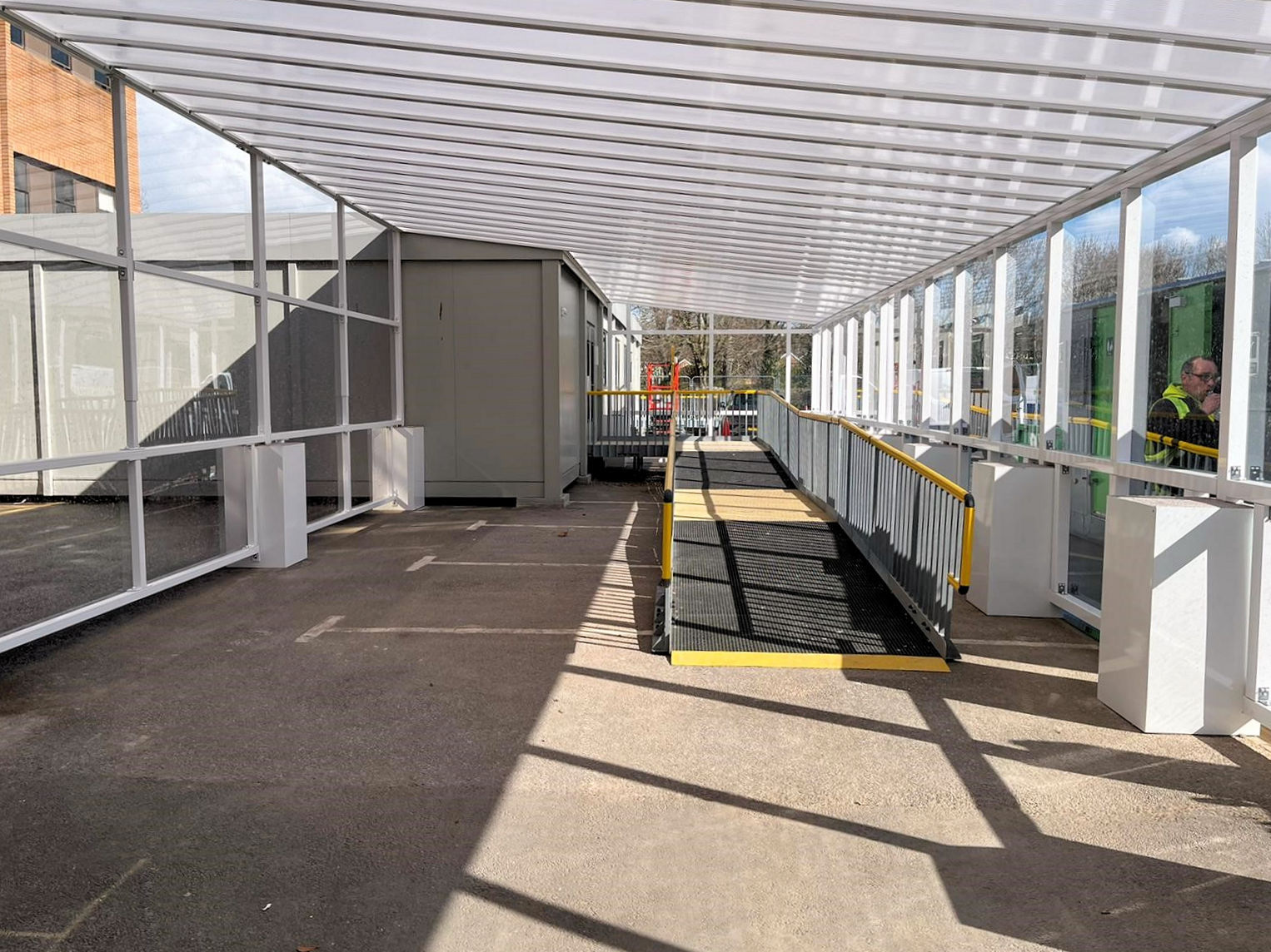 Our canopies for modular buildings can be adapted specifically to suit your modular structures and enable easy removal when the temporary building and canopy are no longer required.