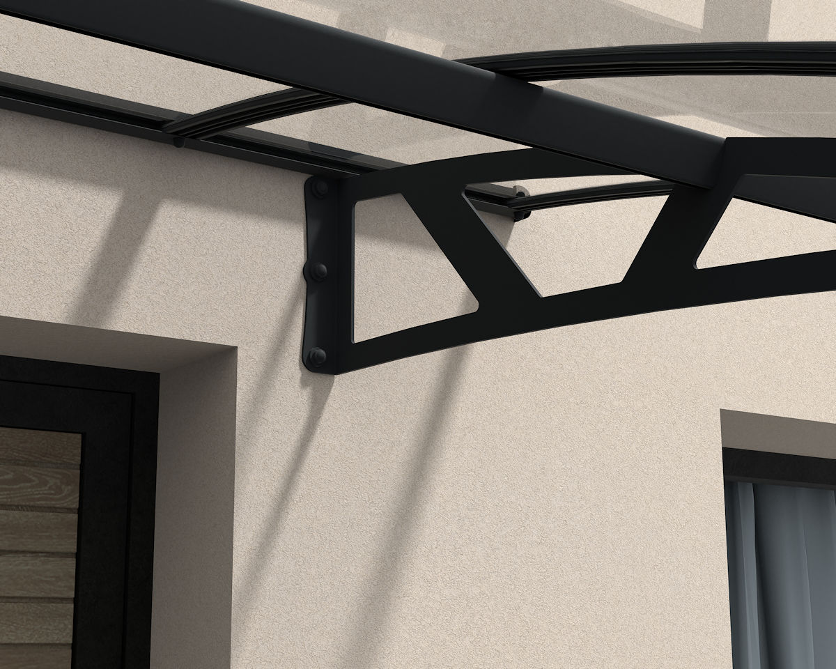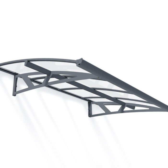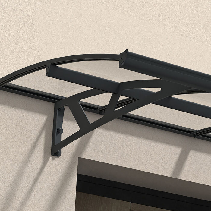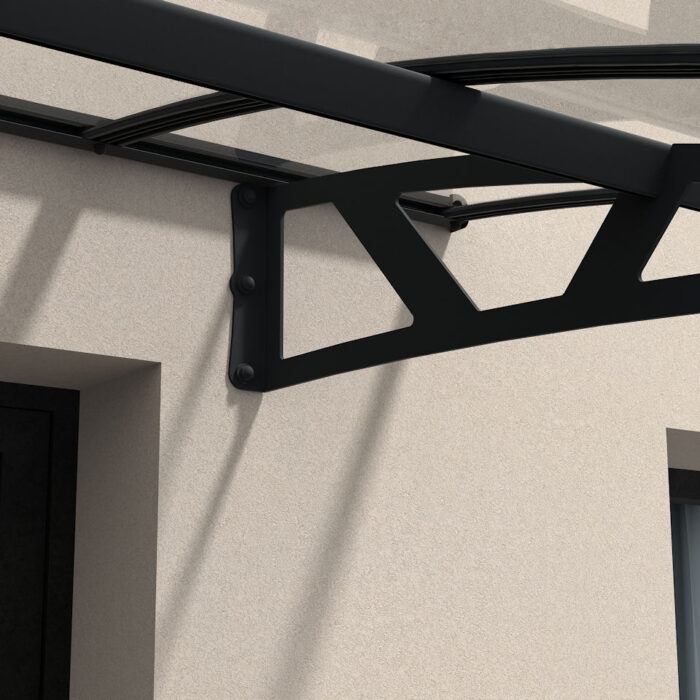 The Avonwick Entrance Canopy’s aluminium frame and steel support arms are powder coated in Anthracite Grey (RAL 7016).