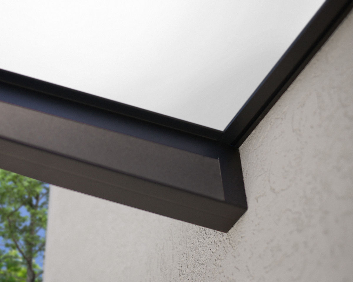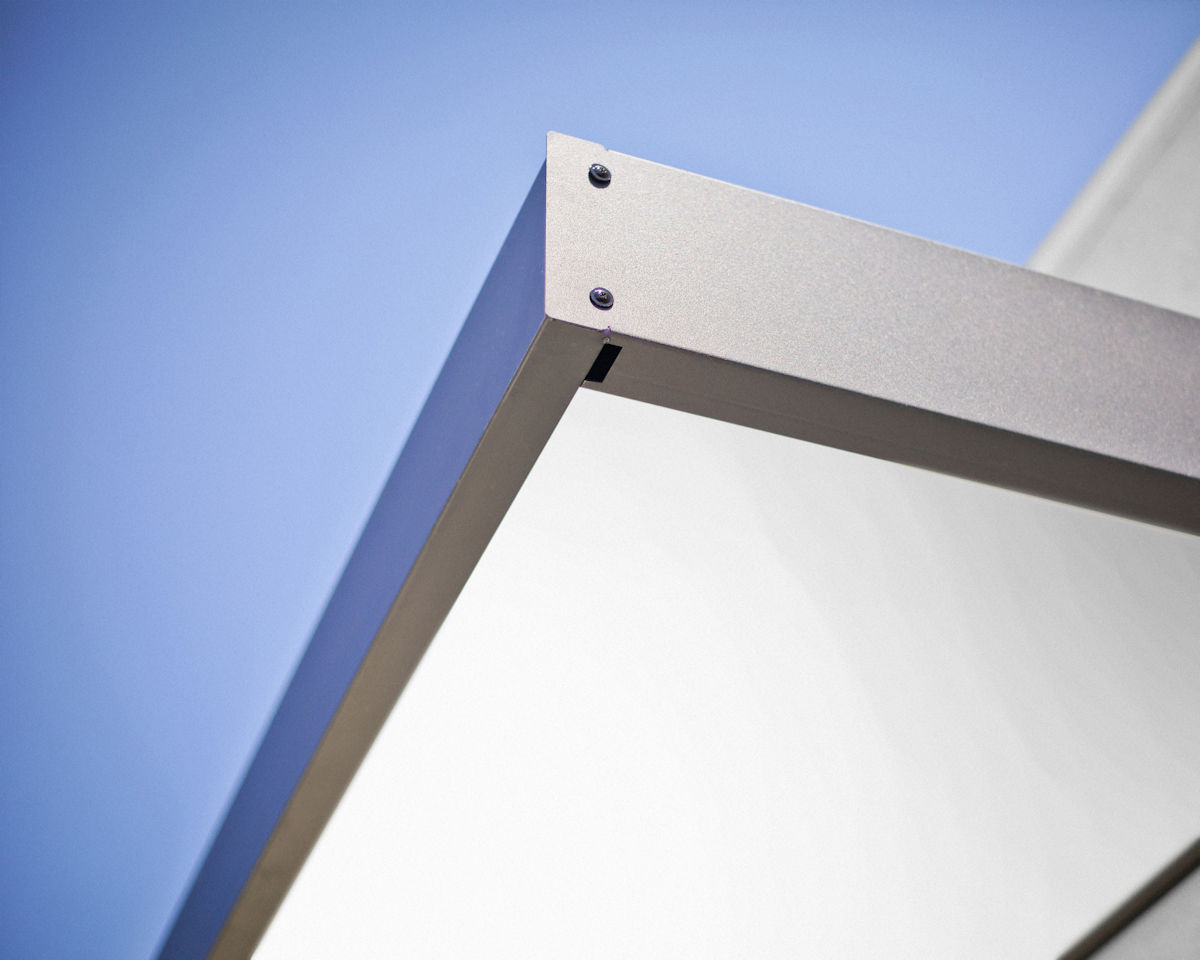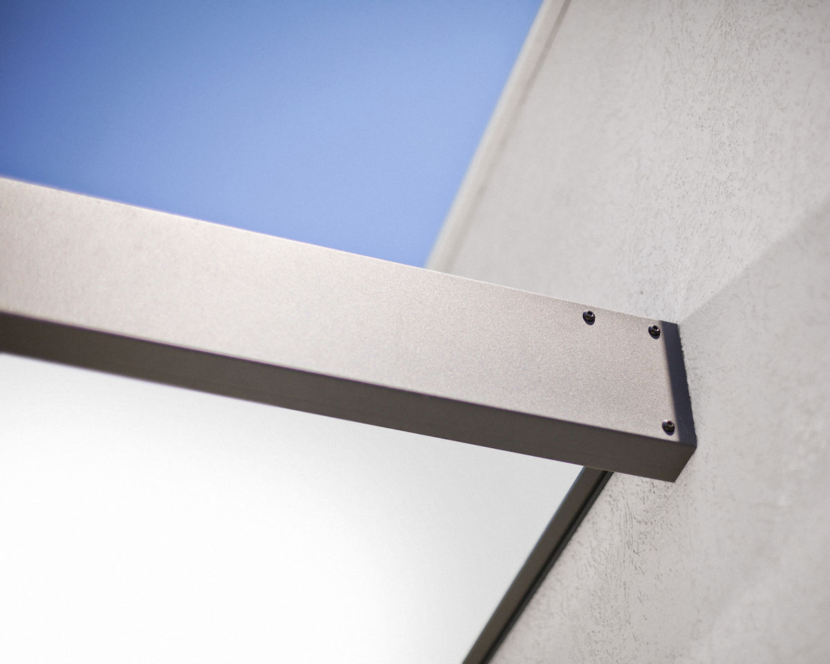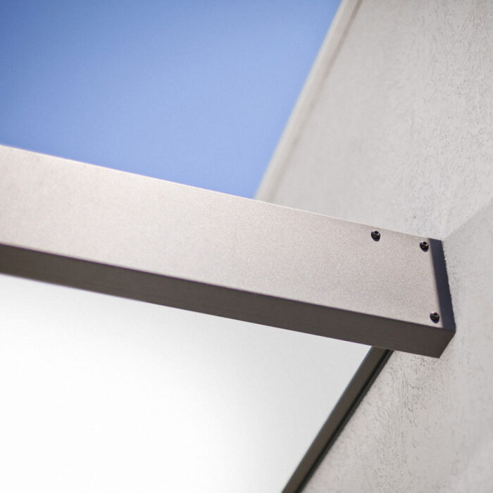 The Clarendon Entrance Canopy’s aluminium and galvanised steel framework is supplied powder coated in Anthracite Grey (RAL 7016) as standard.