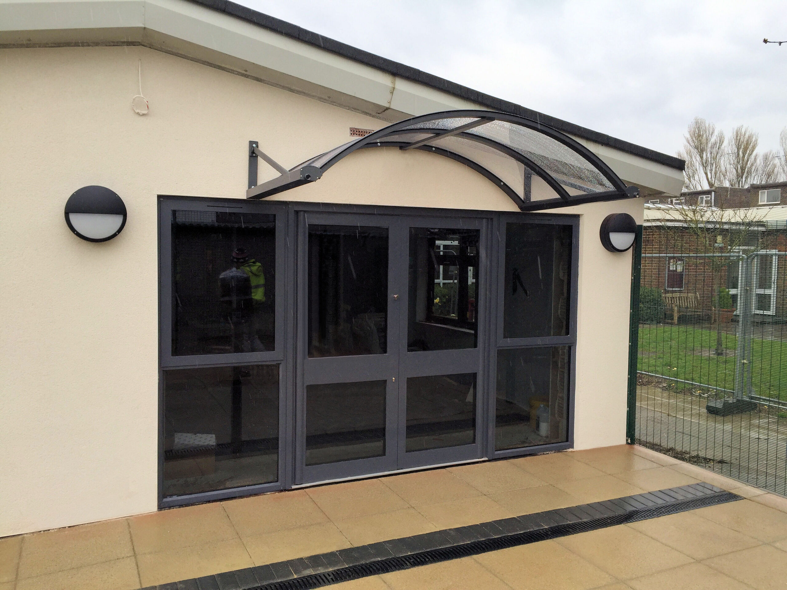 The Colwyn has a simple domed design to complement modern building styles. Its clean lines give any entrance a clean, fresh look whilst providing cover and highlighting the correct entrance for customers to use.
