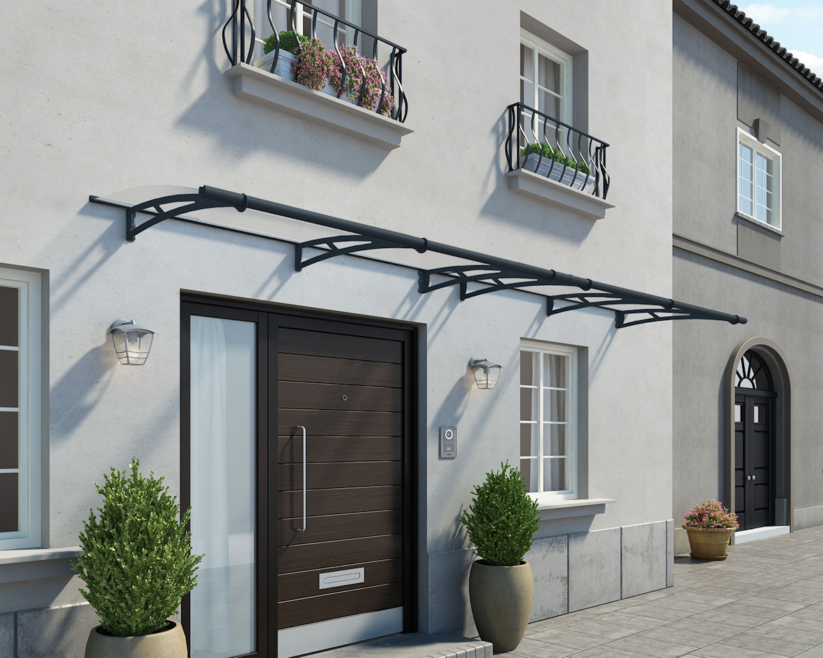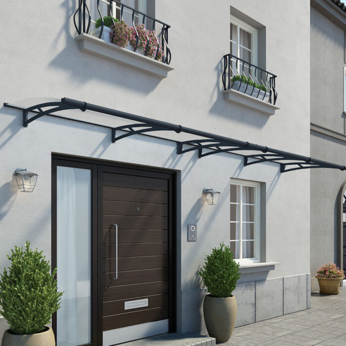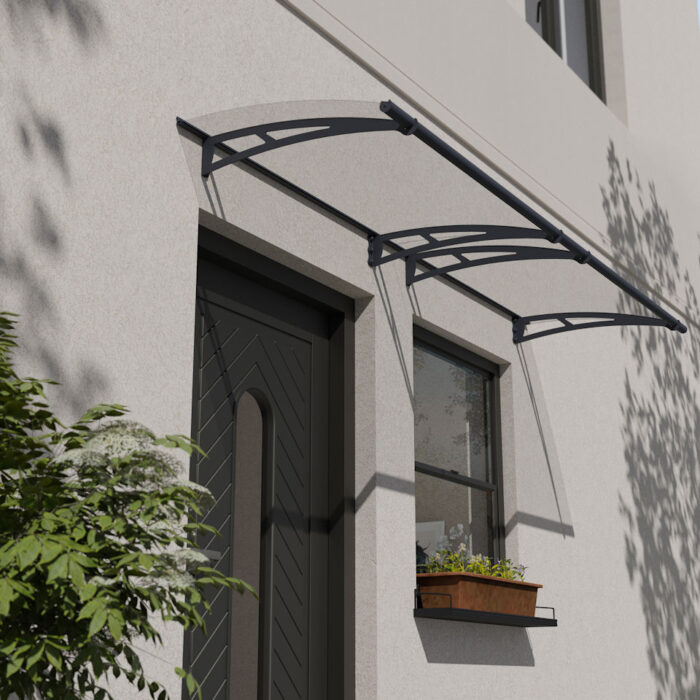 Constructed with a durable, powder-coated aluminium frame in a sophisticated grey finish, the Dalwood is engineered to withstand diverse weather conditions. This sleek entrance canopy features high impact 4mm clear acrylic roof panels, providing excellent light transmission while offering protection against harmful UV rays. This combination ensures longevity and minimal maintenance, maintaining its appearance over time.