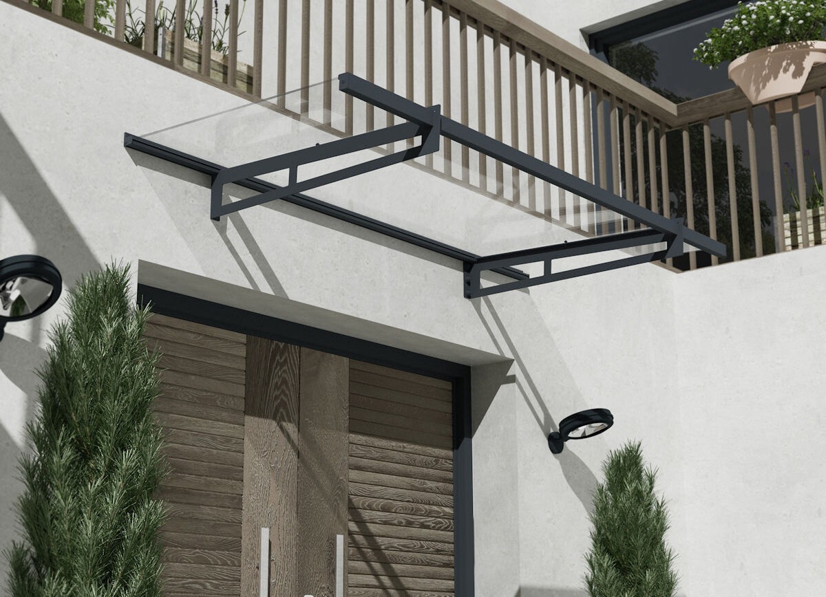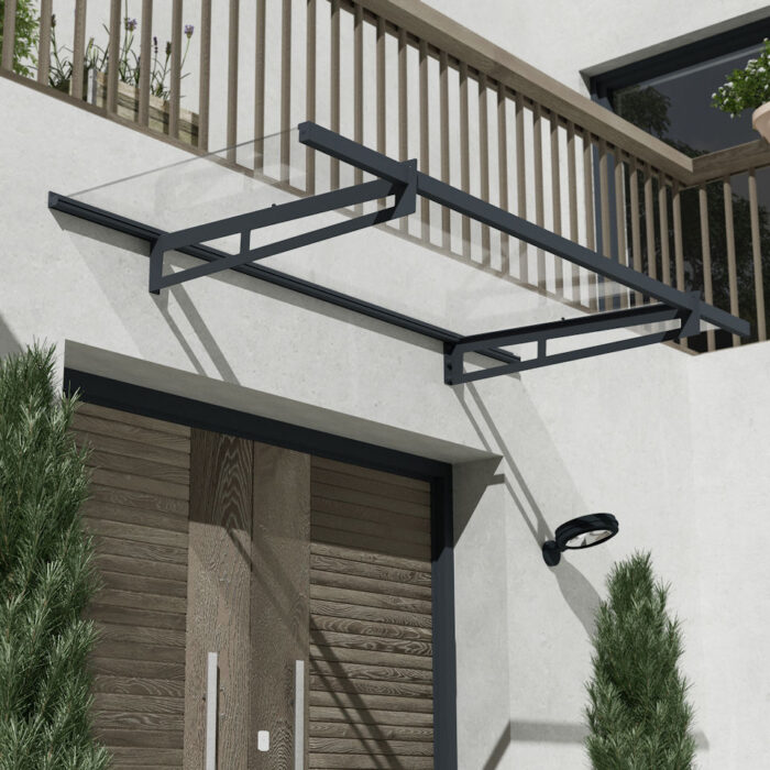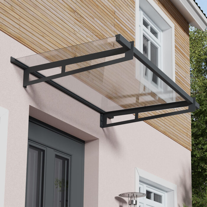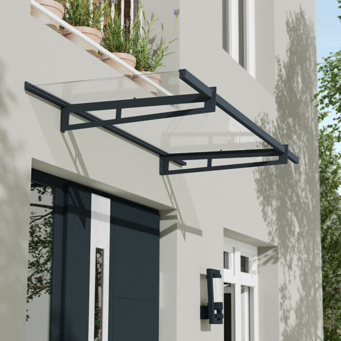 Manufactured with a strong, powder-coated aluminium frame in a sophisticated Anthracite Grey (RAL 7016) finish, this canopy provides excellent durability and resistance to corrosion. The high-quality 4mm acrylic roof panels offer a clear, glass-like appearance, allowing natural light to illuminate the entrance area while providing full protection against rain, snow, and harmful UV rays.