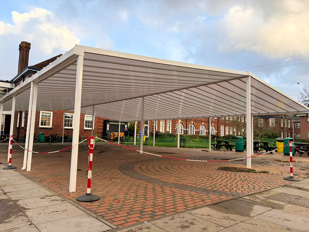 The Coniston’s aluminium framework and steel posts are supplied in white as standard to give your canopy a fresh, neutral look, however they can be powder coated to any colour in our standard RAL colour chart, allowing you to match your canopy to your existing structure, or reflect your school colours.