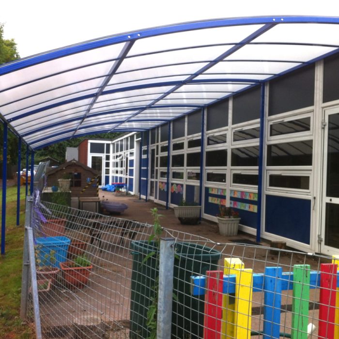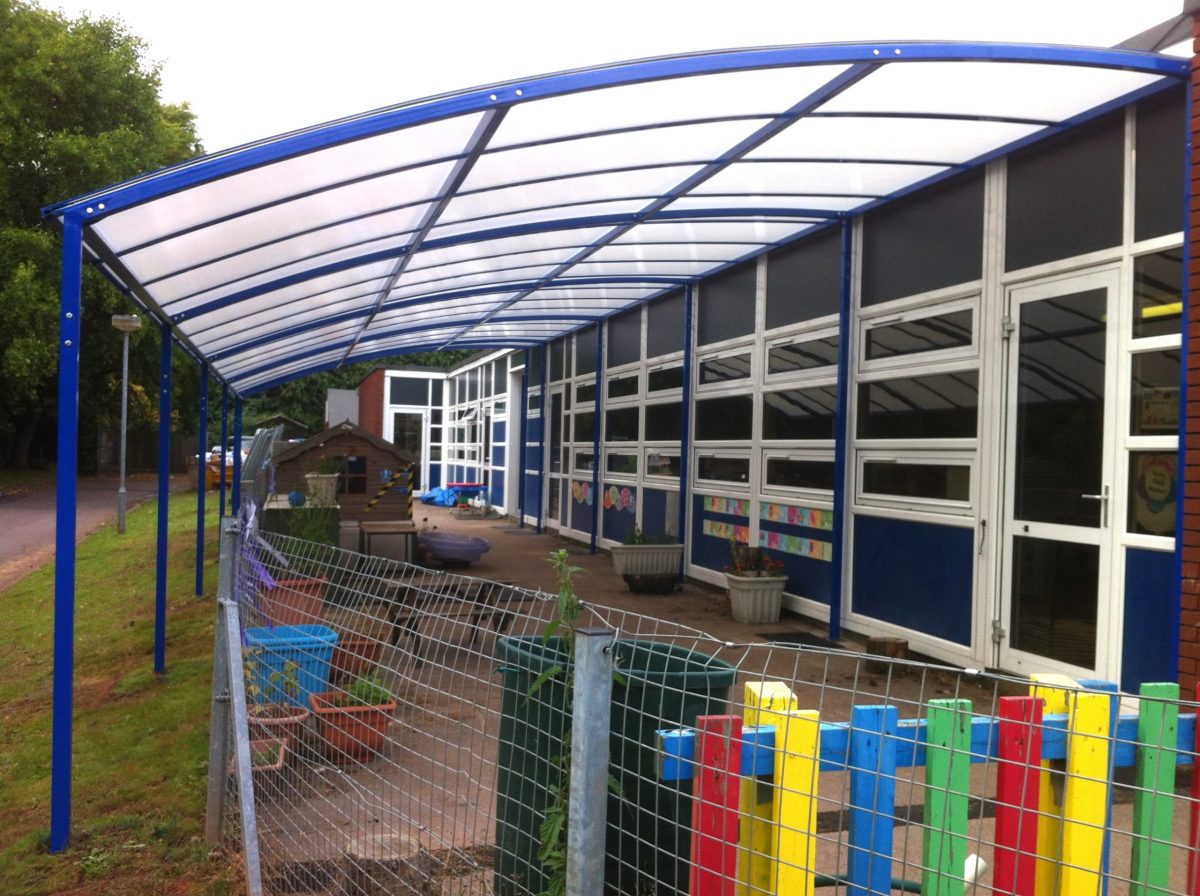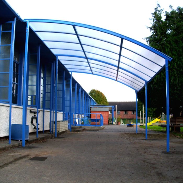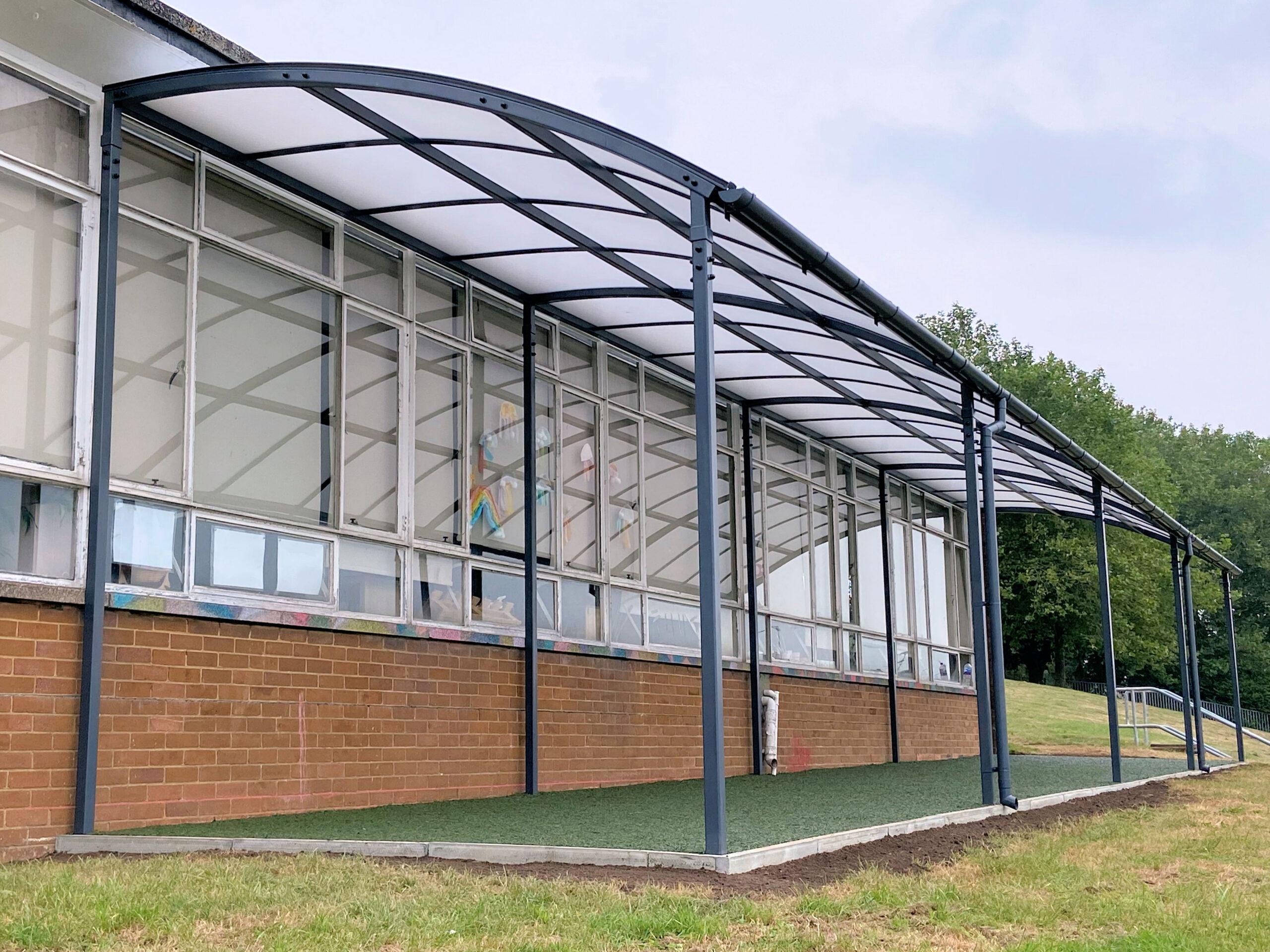 The Devoke Junior is a cost-effective freestanding canopy that is ideal for many organisation types including education, retail and leisure. The versatile canopy structure is constructed from a strong steel frame that is covered with a choice of 5mm solid or 16mm structured polycarbonate roof panels which are available in clear or opal.