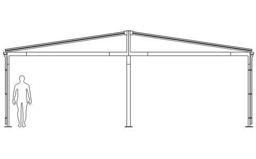 The Double Grange freestanding canopy is designed to cover large areas due to its unlimited length and maximum width of up to 12 metres.