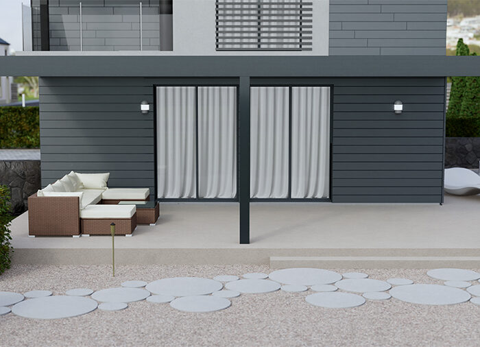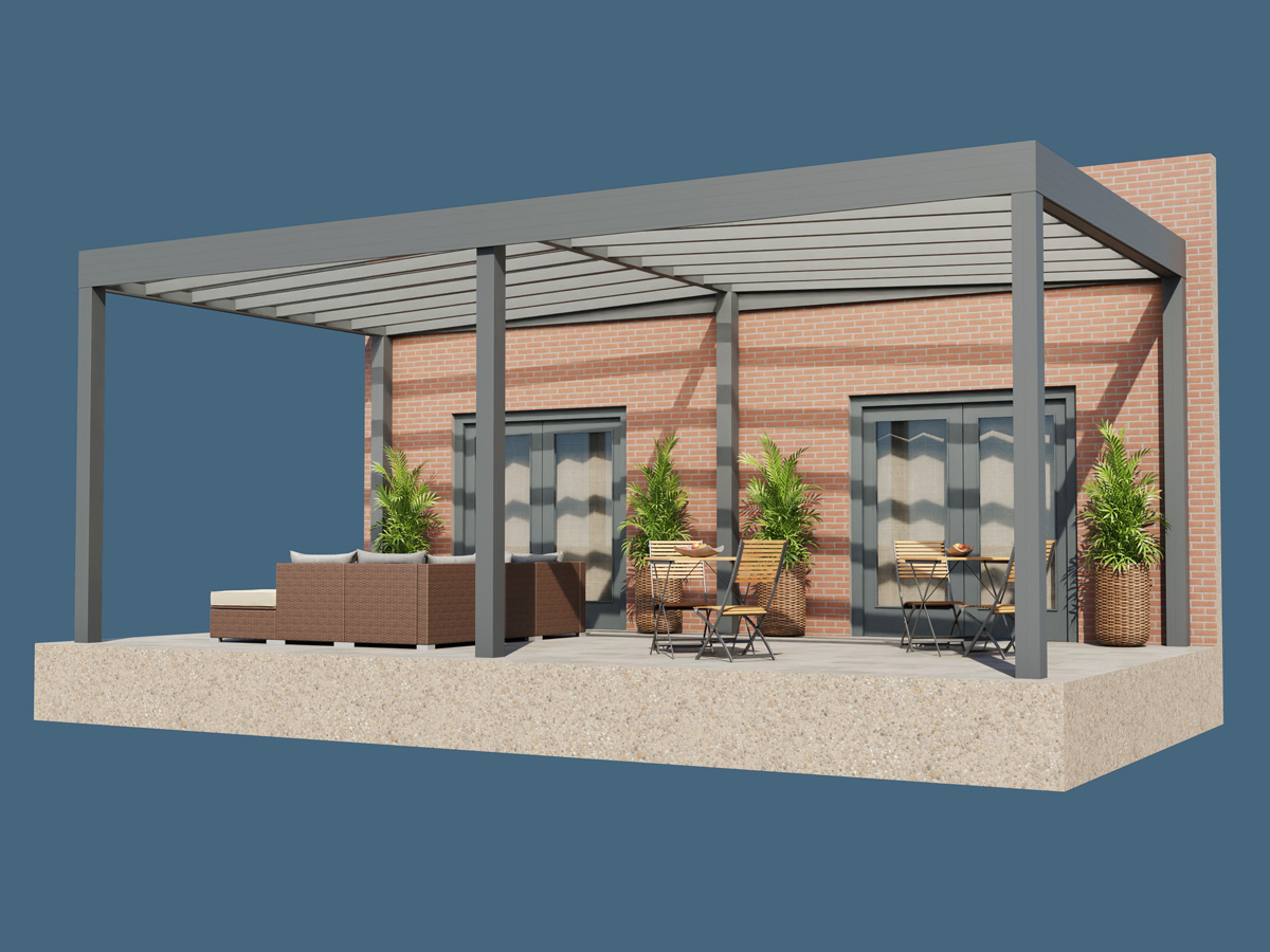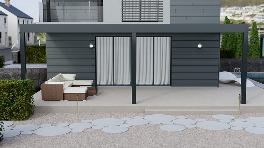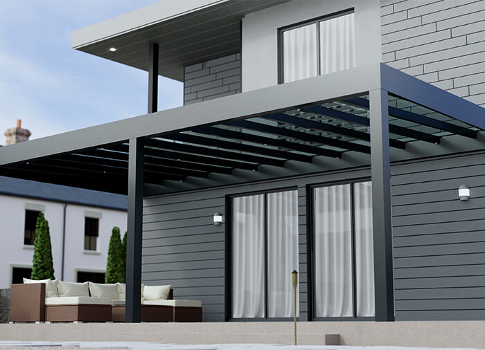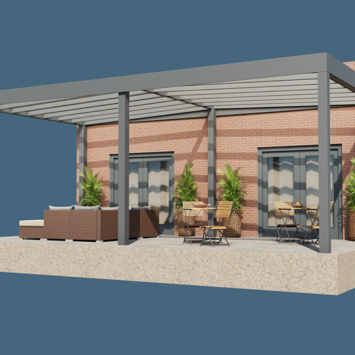 The integrated guttering system which is discreetly concealed within the canopy posts, efficiently disperses water for a sleek design and minimal maintenance.
