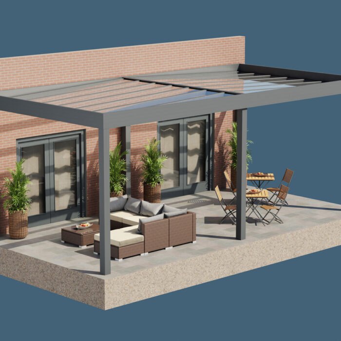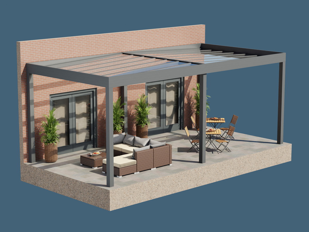 - Glass Roof Panels – The roof is covered with 6mm toughened glass roof panels with a clear finish for maximum light transmittance and an open-air feel