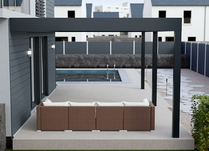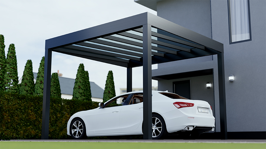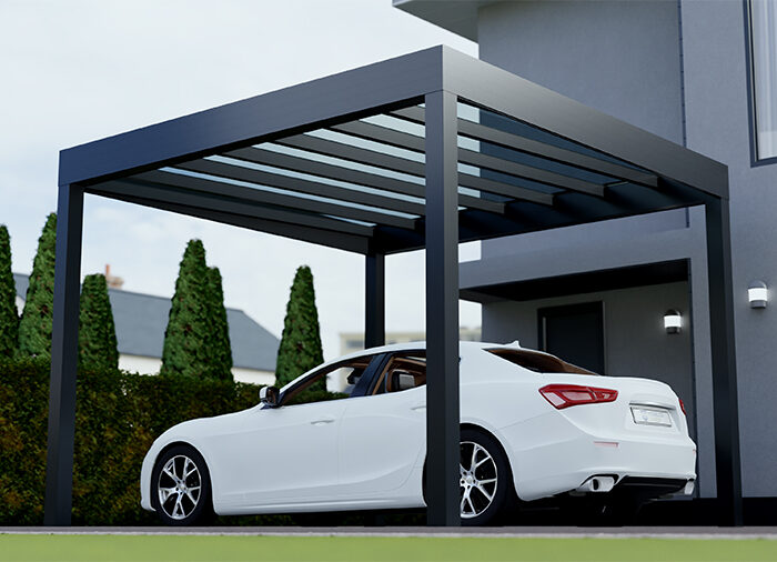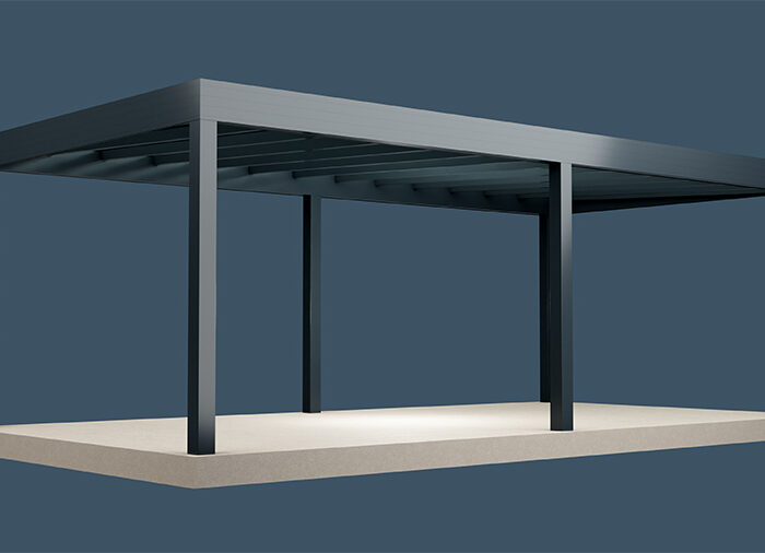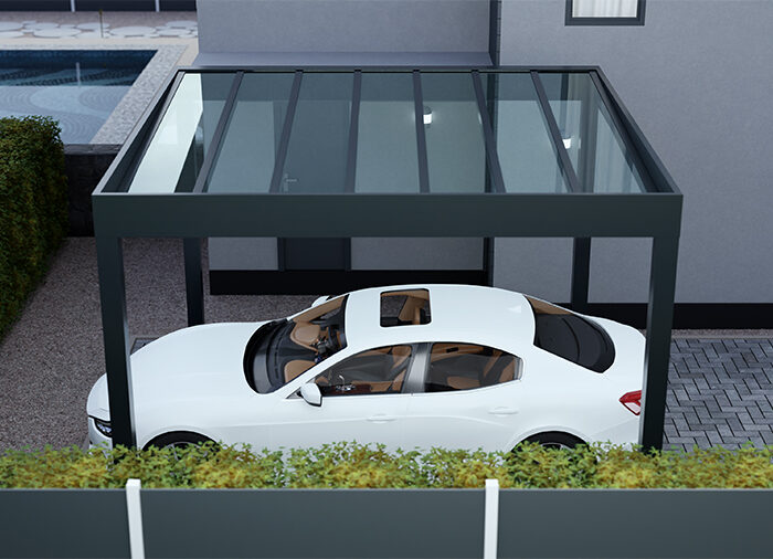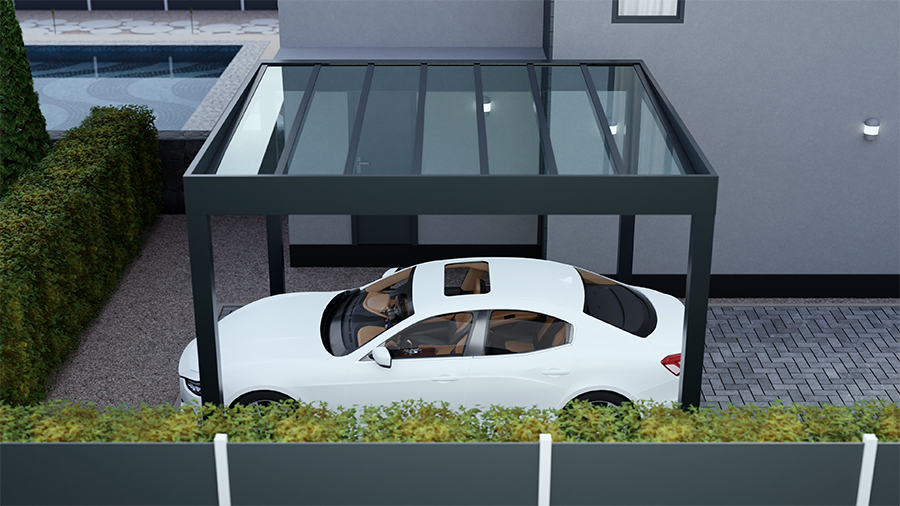 - Integrated Guttering – The integrated guttering system disperses water via the canopy posts for a sleek appearance and minimal maintenance