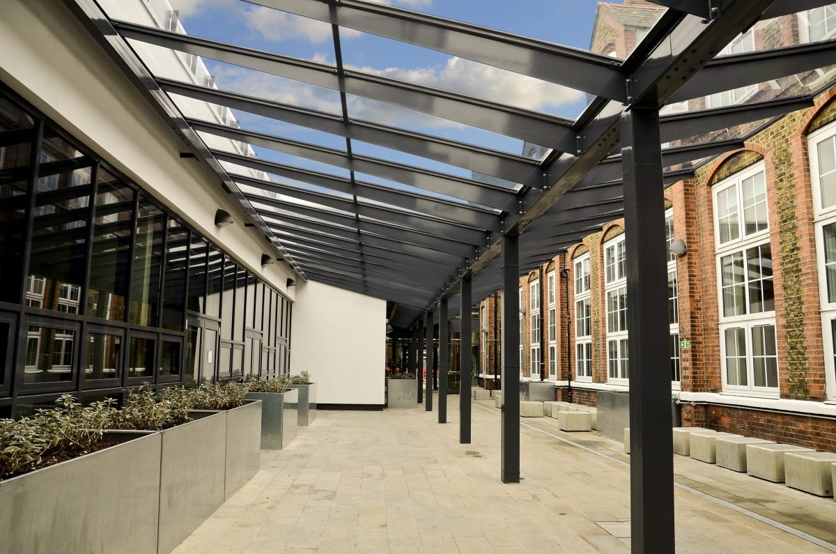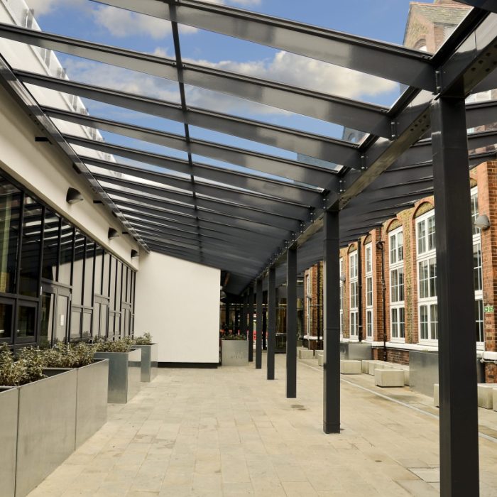 This product is supplied with two roofing materials; polycarbonate and glass. This will encourage the Kensington to fit into a range of budgets and offers you a selection to choose from helping you find the ideal shelter solution for your school/company. The polycarbonate roof is a cost–effective solution and is available in 10mm structured or 5mm solid which has a glass-like appearance. If you would like to create a sleek, up-to-date finish to your canopy then the glass roof option is for you. We have teamed up with a specialist glazing company to ensure that your glass canopy structure is everything you would expect it to be and more.