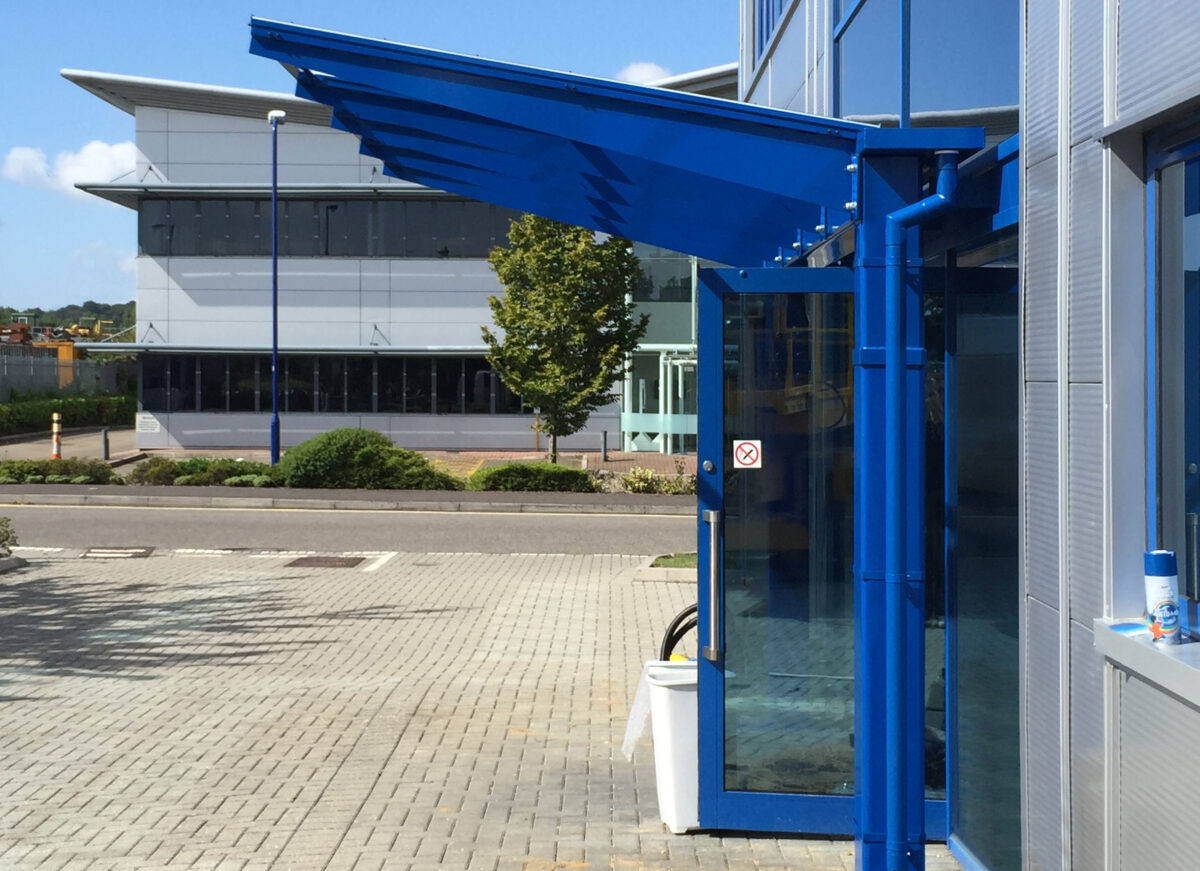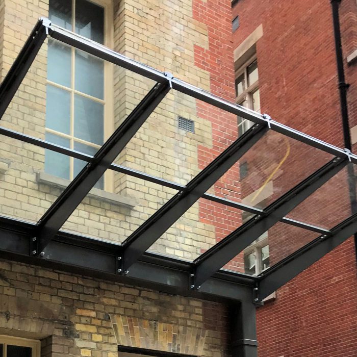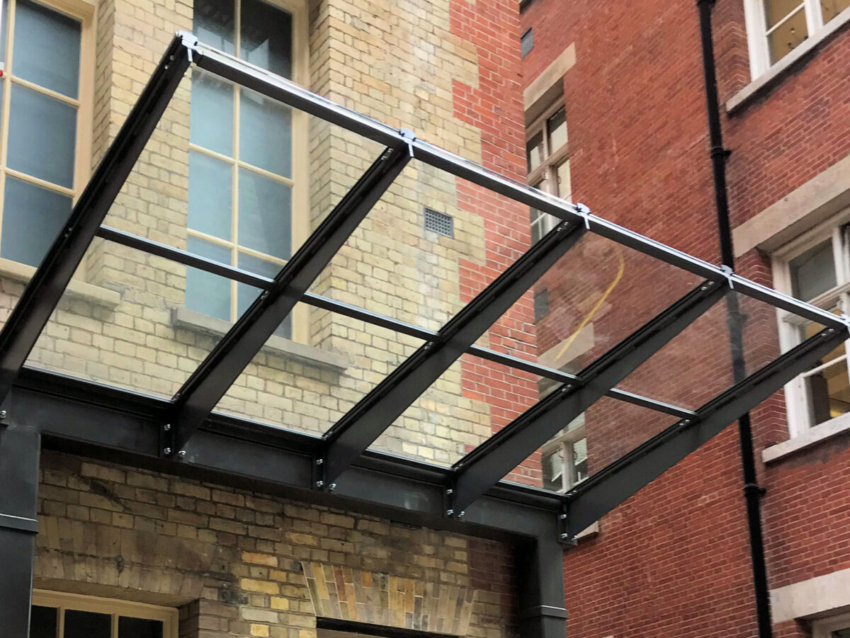 The maximum projection for the canopy is 3m and it has an unlimited length making it ideal for use as a covered walkway between buildings or as a waiting canopy outside a healthcare centre or hospital.