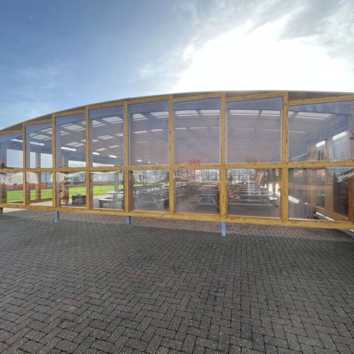 Our canopy side and front fills give maximum protection from the weather. Constructed from 5mm polycarbonate they are UV, vandal and fire resistant and come with a 10 year guarantee.