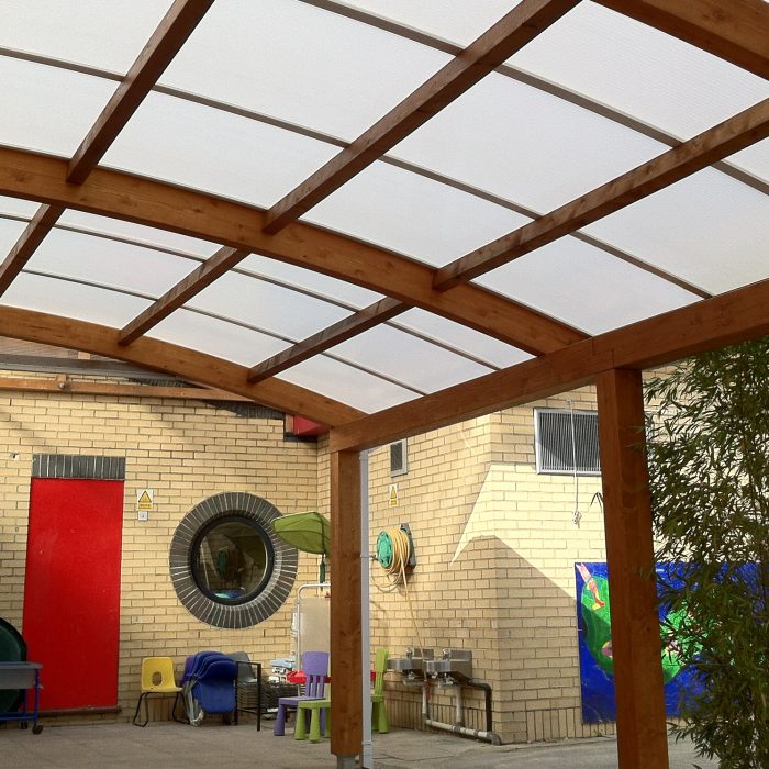 The Tarnhow Curved Wall Mounted Timber Canopy is a stunning structure which provides excellent shade and shelter to those underneath. It is constructed from a curved Glulam timber frame and can be covered with a choice of waterproof tensile fabric, 5mm solid polycarbonate or 10mm structured polycarbonate roof panels to suit your requirements.