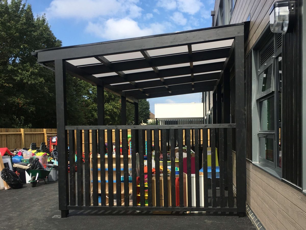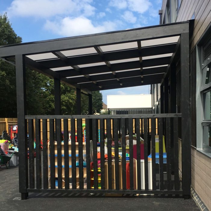 The Tarnhow Mono Freestanding Canopy is constructed from a sustainable, durable timber frame and benefits from a flat roof. The freestanding timber canopy provides shelter and protection from the weather all year round and can be used as a variety of applications including covered play areas, walkways and waiting areas within schools, colleges, hospitals or care homes.