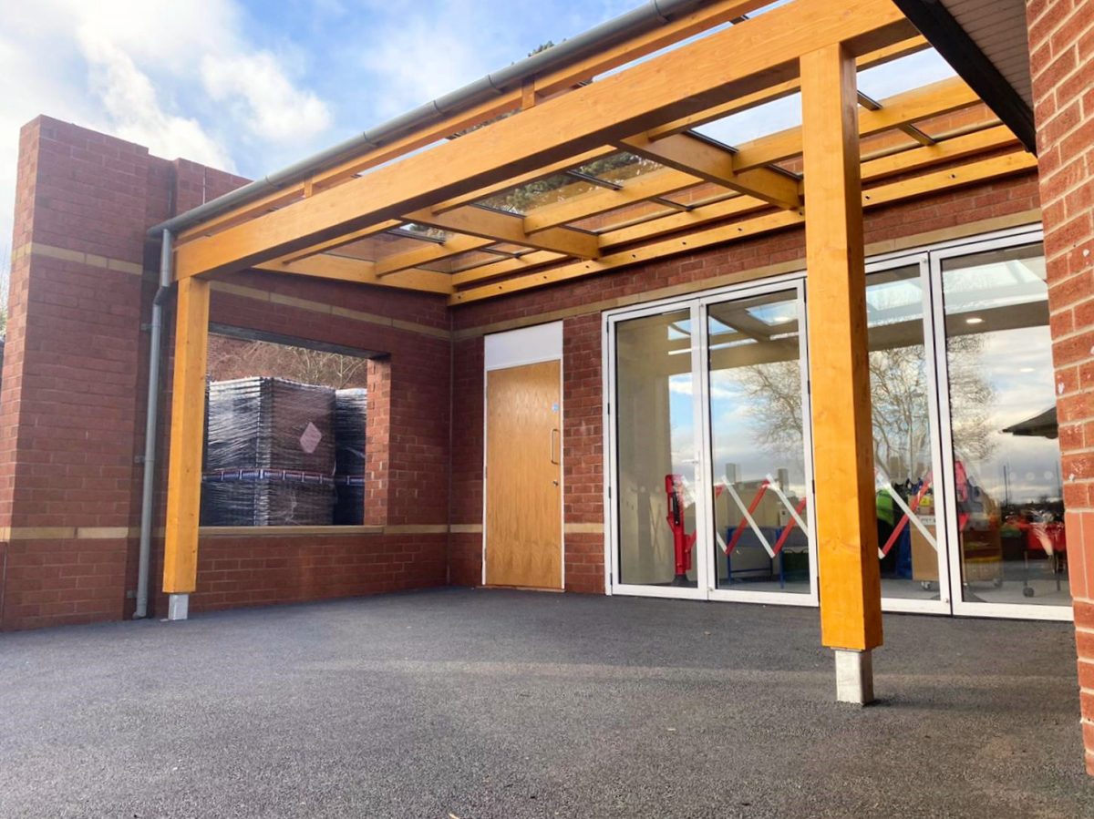 Due to its ability to span to any length, this structure is perfect for creating a sheltered walkway or outdoor learning area adjacent to your building. The Tarnhow Mono Wall Mounted Canopy will also create an attractive, welcoming entrance to your building.