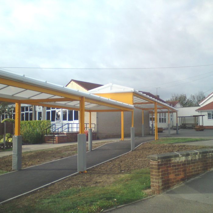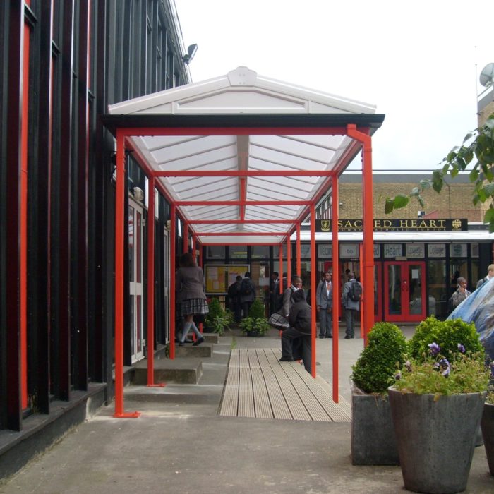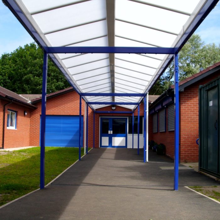 The Ullswater Walkway Canopy provides an entirely new way to build a free standing canopy using a unique corner system for ultimate strength and large self-supporting spans.