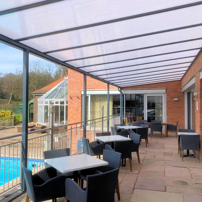 Absolutely. Our canopies are designed to withstand the UK’s diverse weather conditions. They are permanent structures that have been designed to provide weather protection all year round. The polycarbonate roof panels feature a special treatment against UV degradation for long-lasting protection and durability.