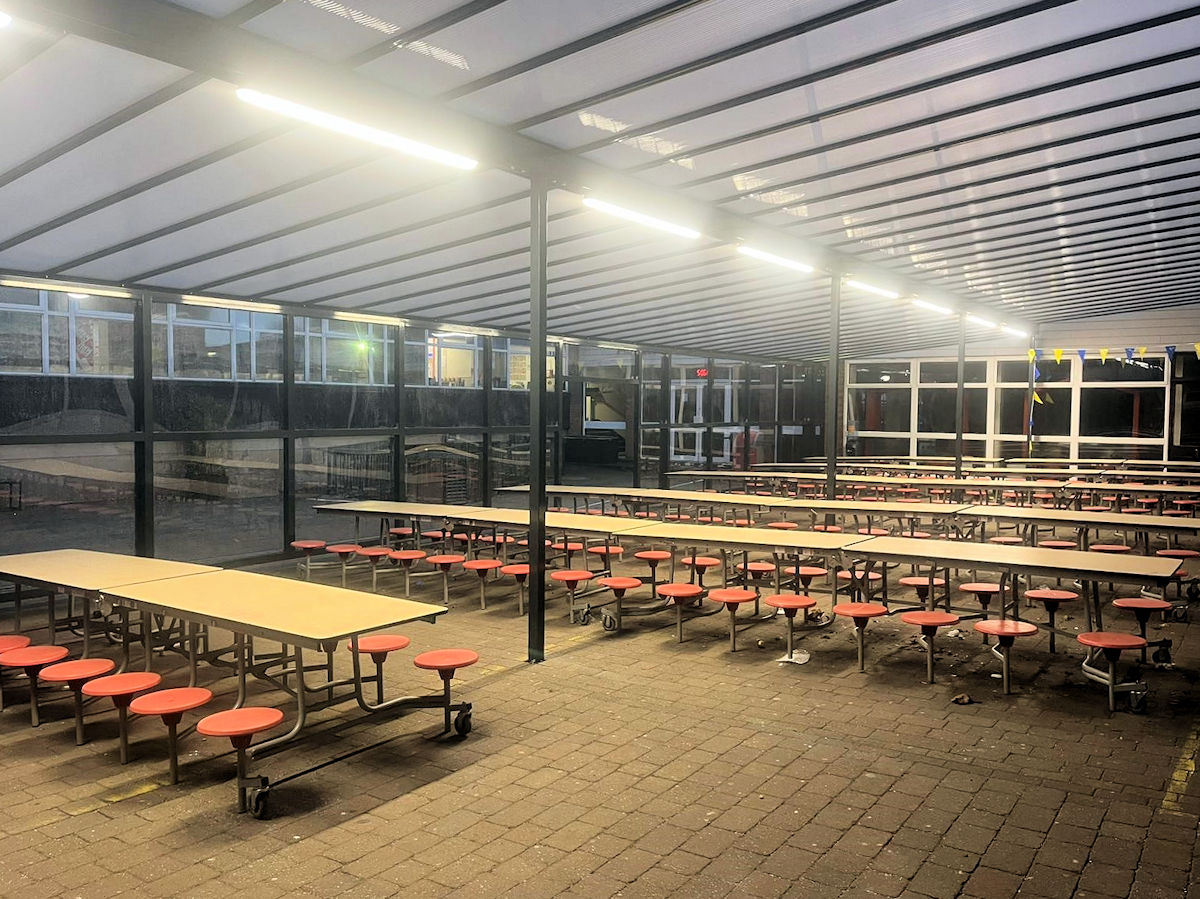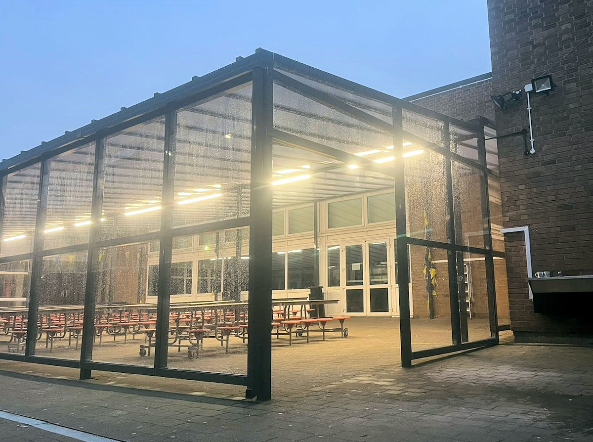 The Stepped Coniston Canopy’s fully aluminium framework is finished in white as standard to give your canopy a fresh, neutral look however, it can be powder coated in any RAL colour at an additional cost, allowing you to match your canopy to your existing structure, or reflect your school or company branding colours.