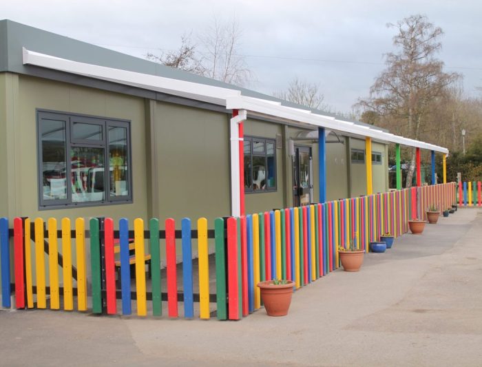 The timber fencing is available in a range of colours including both natural and bright shades.
