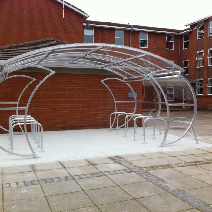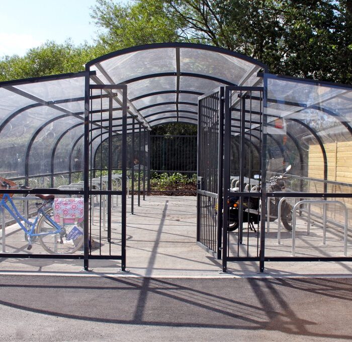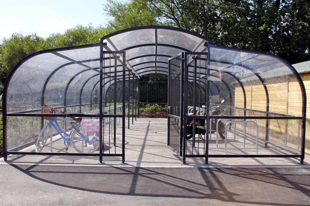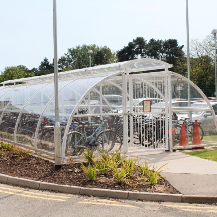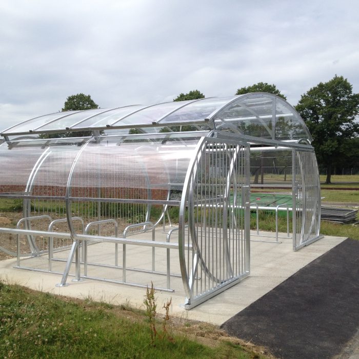 The Easydale Cycle Compound is a strong steel cycle compound that is covered with 5mm thick, clear polycarbonate panels. A standard shelter can hold up to 20 bikes however, they can be manufactured in larger sizes to cover a larger number of bikes to suit your needs. The Easydale Cycle Compound is particularly popular within universities and secondary schools.