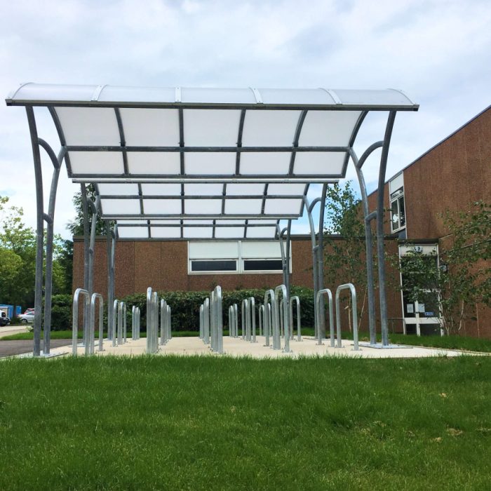 The Langdale Cycle Shelter is a contemporary steel shelter that provides cover using 5mm solid poly or 16mm structured polycarbonate sheets. The Langdale is fitted using a unique clamping system on the edge of the shelter. These clamps dramatically reduce the need to drill holes, therefore avoiding water leakage and bulging of the panels.