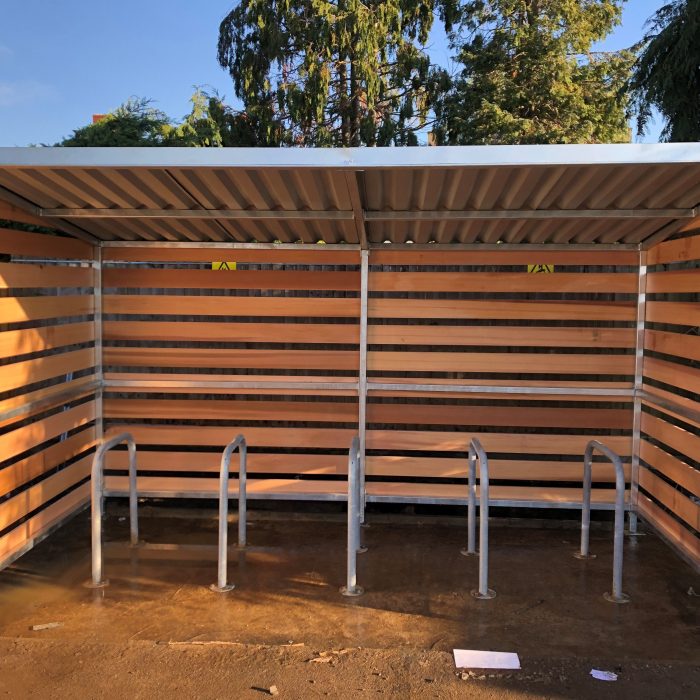 • Timber cycle shelters fit in perfectly with natural and modern environments