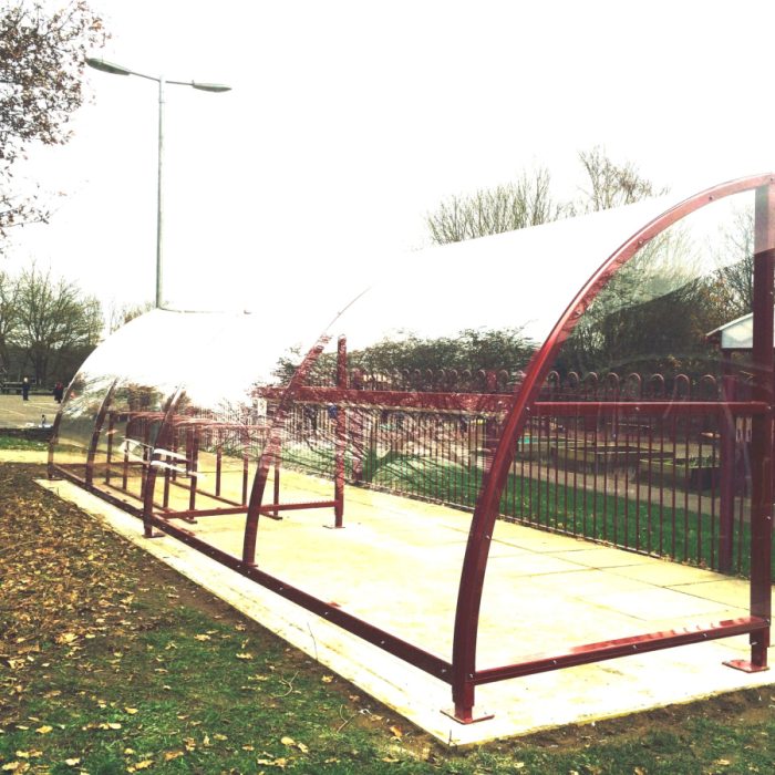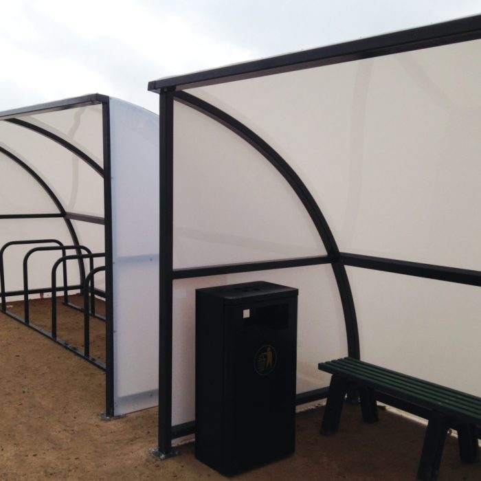 The Easydale shelter measures 4.1 metres x 1.7 metres and can be fitted with a range of freestanding benches. It is covered with 5mm solid polycarbonate roof panels. Polycarbonate side panels are available on request at an additional cost