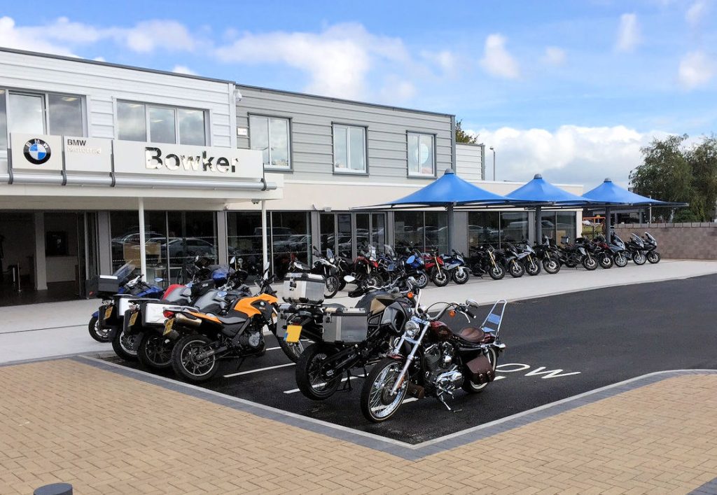 The Bowker Motor Group is one of the UK’s leading motor groups. Founded in Blackburn in 1919, it has grown rapidly, diversifying in 1984 into the retail motor trade, developing a reputation for the highest levels of service and an innovative approach to transport needs. They contacted us in June 2015, looking for a shade and shelter solution to make the most of an outdoor sales area for their range of BMW motorbikes (Bowker Motorrad) at their brand new dealership in Preston, Lancashire…