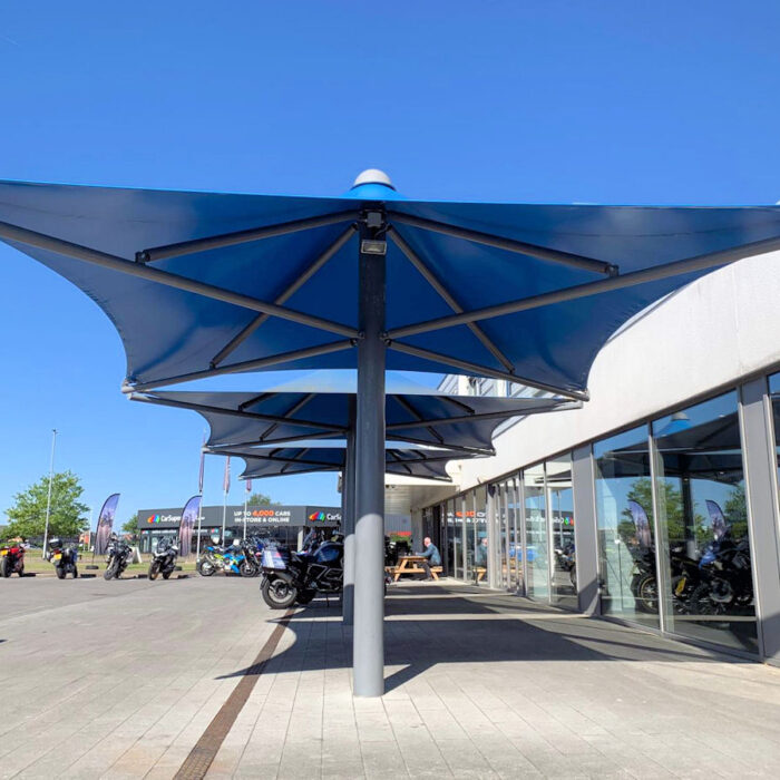 The Ulverston is supplied with white fabric as standard, however there are 39 other colours which are available at an additional cost. The fabric can adapt to any required shape and size including walkways and umbrellas which makes them particularly suited to the education and leisure sectors. The flexibility of the fabric allows us to present you with an exciting range of tensile structures in whatever commercial settings you require cover for.