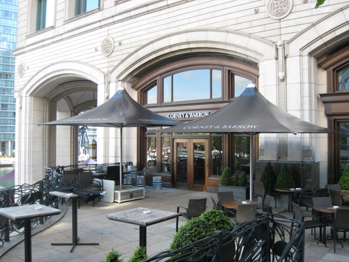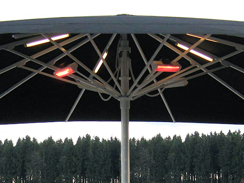Accessories such as heating and lighting extend the use of your umbrellas into the night and upgrades such as side panels and rain gutters block driving rain and directs rainfall into specified areas.