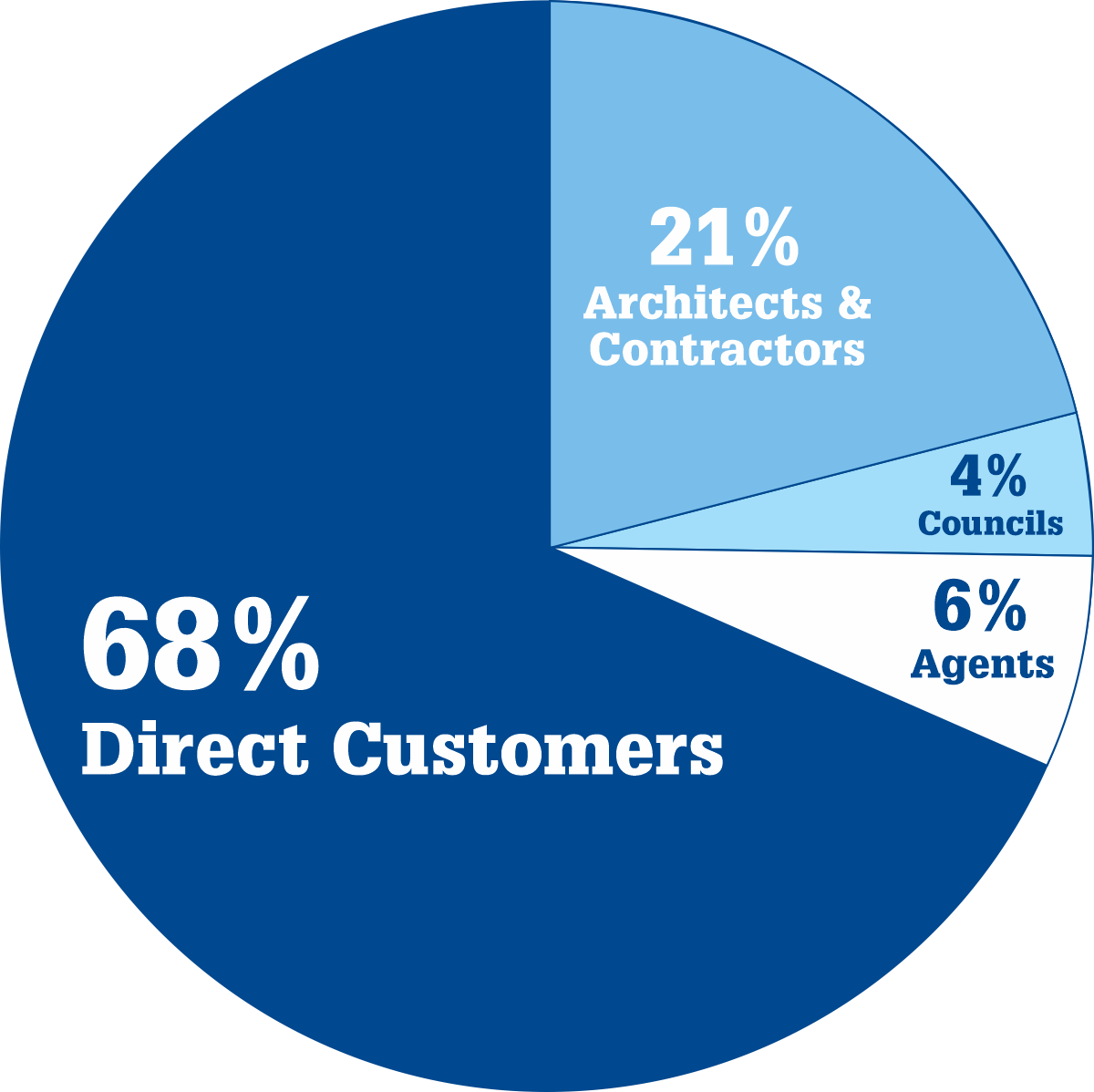 The majority of customers who invested in a Coniston Wall Mounted Canopy in 2022 were direct customers, with 21% being Contractors and Architects, 6% agents and 4% councils.