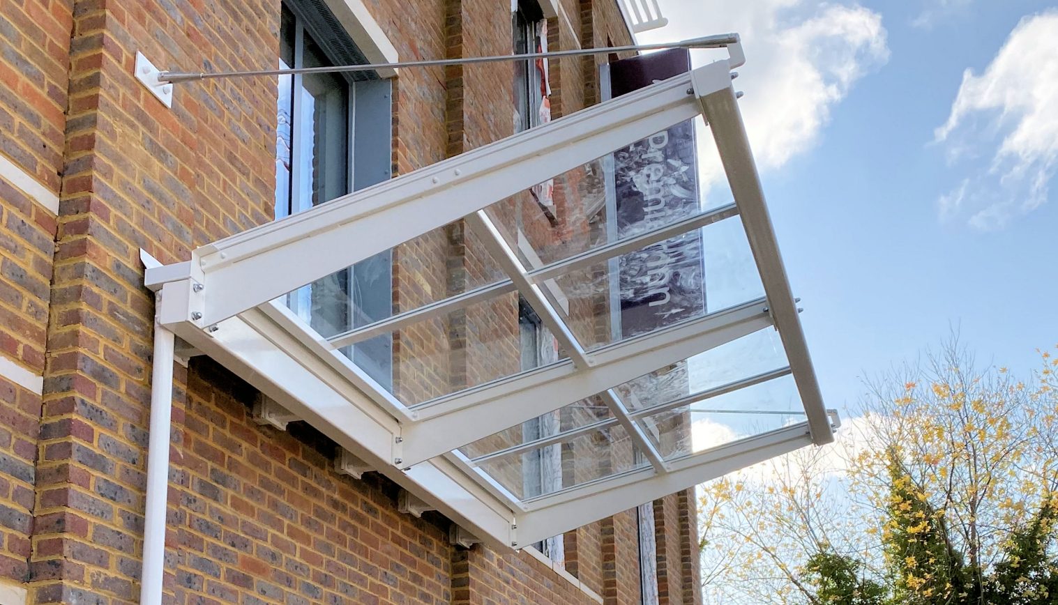 The 3.3m x 2m canopy was finished in Pure White RAL 9010 to complement the building façade and featured the 10mm clear toughened glass roof panels.