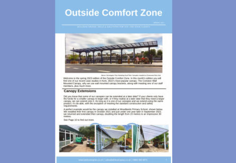 Welcome to the Spring 2023 edition of Outside Comfort Zone – your quarterly dose of building solutions and news for you and your clients. In this month’s edition you will find one of our recent case studies in Kent, 2022’s most popular canopy; The Coniston Wall Mounted Canopy, why we use wall mounted canopy brackets, along with meeting one of our staff members, plus much more.