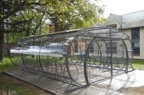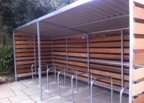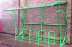 A steel cycle shelter with a contemporary design that provides parking for up to 10 bikes.