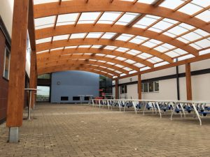 Our recently completed installation of a huge Tarnhow timber canopy is a great example of that. It is a big weather protection solution for a large uncovered space. It showcases the beauty of a timber frame and how well the natural material works with the surrounding buildings. It also delivers the practical benefits that schools require. In this case, it was the provision of the maximum useable space that was safe and flexible. The Tarnhow Done Free Standing Canopy allowed the space to be covered with no central supporting posts, meaning children could move freely under the canopy. This also allowed the space to be used in many ways – dining, break times and even school events. This approach also delivered a cost-effective price that could not be achieved with other options, such as steel.