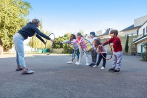 One time that schools don’t always encourage exercise is at break time. Yet exercising after eating can be very helpful. Research has shown that it can help with digestion and lowers obesity. However, if you do have a break time during the hottest period of the day, be sure that children are exercising under the cover of a canopy.