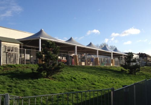 The staff at Underhill Infant School were so impressed with the canopy and the benefits that their pupils were gaining from outdoor play & learning, that they decided to expand their outdoor facilities by ordering another two Codale Conics in October 2012. They requested for the canopies to be installed alongside the current structure, extended it by 13 metres, making the total length of the structure now 31 metres long and 5 metres wide!