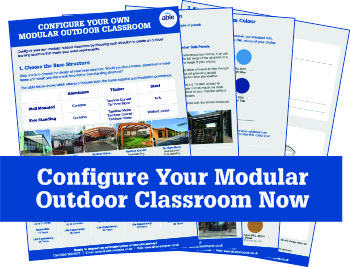 We’ve giving you a healthy choice so you can configure your own modular outdoor classroom yourself choosing from a wall mounted, free standing or timber canopy, and then you can add your upgrades to transform it into the perfect modular outdoor learning hub for your school. Click here to download your free copy of the ‘Configure Your Modular Outdoor Classroom guide.