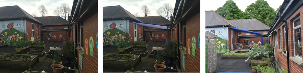 The next stage would then be the installation process. Please see images below that shows the survey picture, the survey picture with a superimposed render and then the finished installation picture. This shows how life like the renders are so you really can see what your future canopy will look like in place.