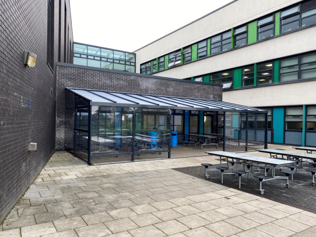 The academy, which first opened in the 1940s and was rebuilt as an academy in 2014, was in the process of an extension which included a new science block, dining hall extension and internal refurbishments. As part of the dining hall extension, they required a commercial canopy to further extend their dining capacity and offer their students the choice to dine inside or outside with full weather protection.