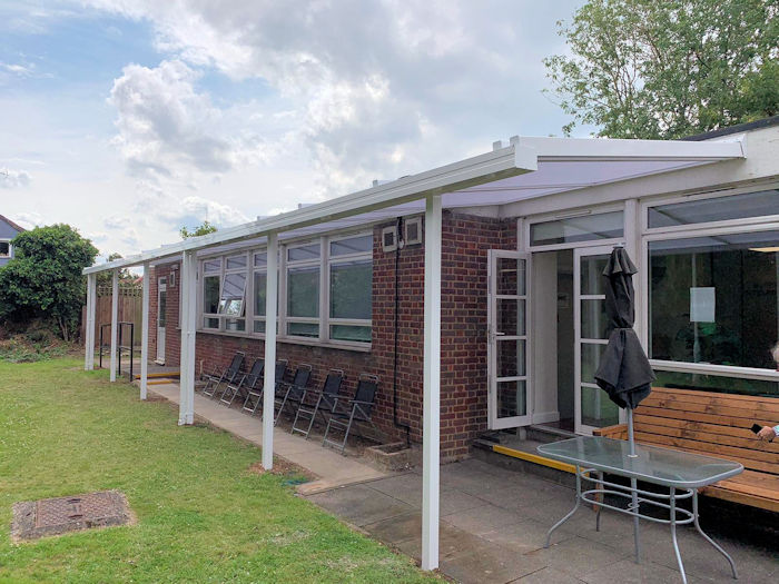 We supplied and installed a 15m x 4m Coniston Wall Mounted Canopy attached to the Davis Unit which meets the existing concrete canopy on the Ferguson House to create a continuous cover from the weather.