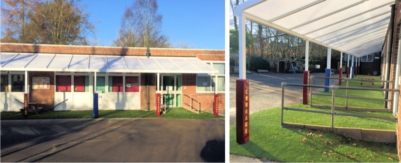 Brandhall Primary School in Oldbury, West Midlands ordered a 23m x 3m Coniston Wall Mounted Canopy from us, yet they wanted to personalise their canopy and encourage enthusiasm and positivity within the playground. To do so we created bespoke post pads for their canopy which included words of their choice including courage, compassion, honesty, ambition, respect and belonging.